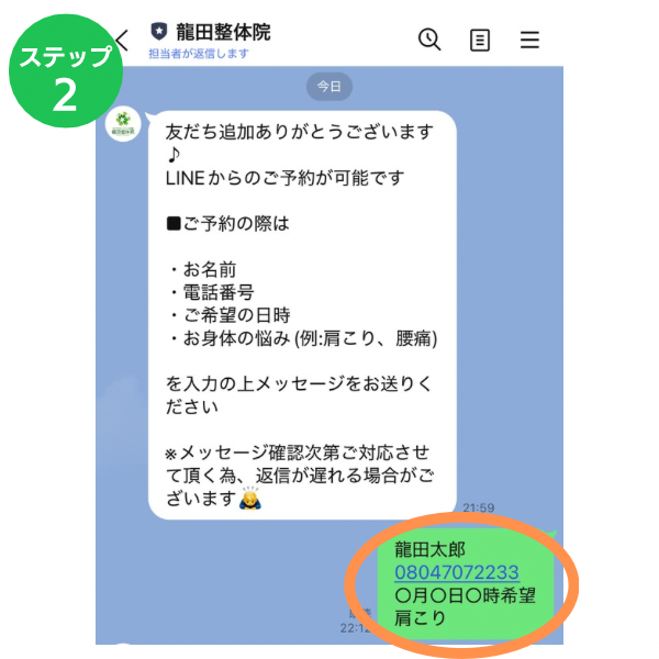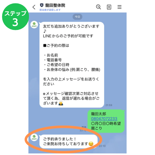 ※施術中お電話での対応が出来かねる場合がある為、LINEからのご予約をオススメします